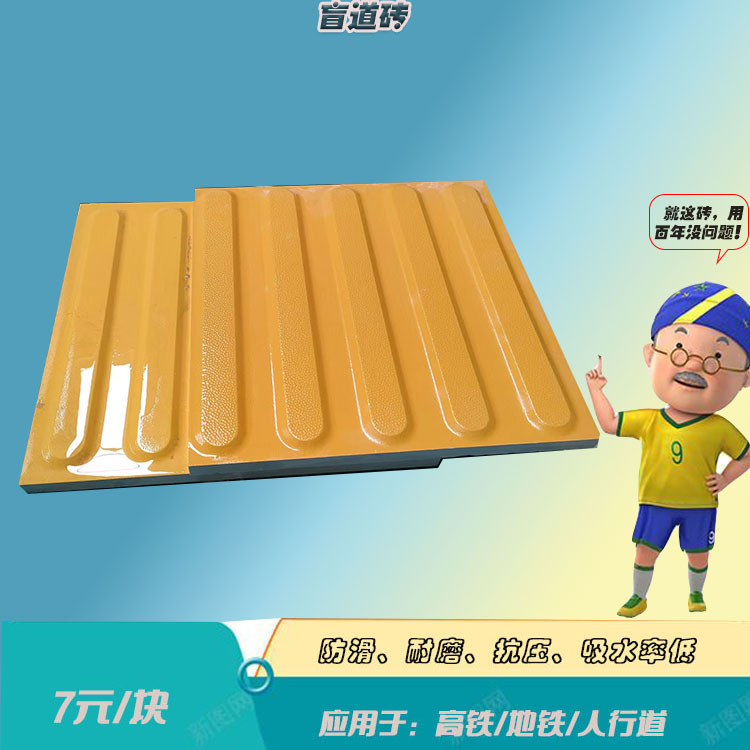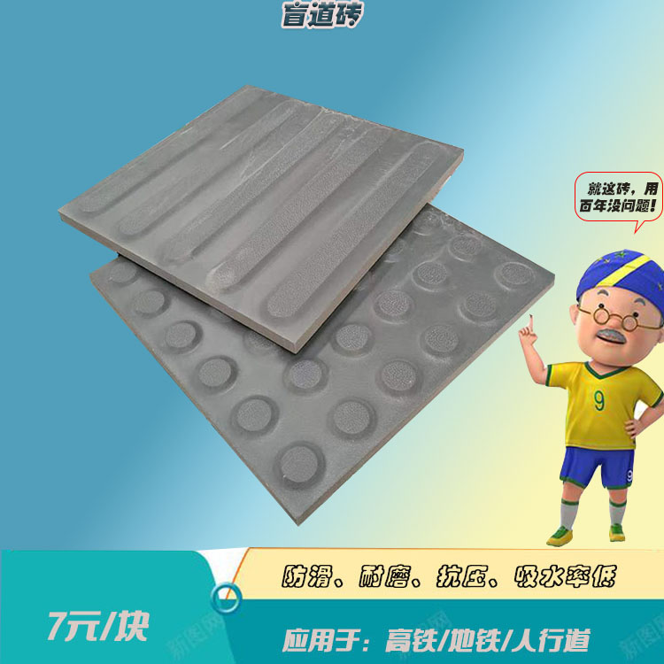 陶瓷盲道砖根据使用环境分为圆点止步盲道砖和条形引路盲道砖两种。圆点止步多用在需要乘客止步停留的地方,条形盲道砖多是指引作用,引导乘客行进的正确方向。