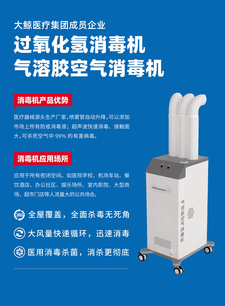 过氧化氢空气消毒机。医用气溶胶消毒空气机是针对现在日益恶化的医院环境而研制出来的。它可在短时间内轻松实现局部空间的无尘无菌,让有害病菌和污染的空气远离医务人员及病员。因此可以的应用于医疗单位的工作环境中里,达到净化空气、保护医务人员及病人身体健康的作用。
