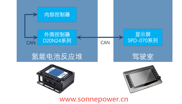 用于客货车的反应堆一般需要2个控制器,在硕博电子的一家客户研发生产的反应堆中,主控制器直接控制氢气与氧气的化学反应。外围控制器采用长沙硕博电子的D20N24系列控制器,主要实现温度、压力信号的采集,反应堆的安全监控,如散热器,水泵等,并负责读取内部控制器数据,与车辆行走系统的通讯,配合系统主控单元完成优化整车系统性能。