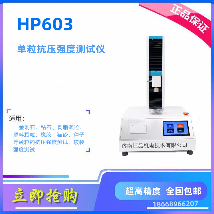 人造金刚石因为其硬度高、耐磨性好、透光性好、耐腐蚀、绝缘性好等特性而不断被人追捧,应用于珠宝、半导体电子装置、光学装置、切削工具等各方面。那么人造金刚石单颗粒抗压强度仍然是衡量其品质的一个重要的性能指标。所需单位就会在生产之前或者是生产过程中对单粒进行抗压试验,人工测试抗压强度对数据的结果相对影响因素会大一些,再加上每批次甚至每颗粒的压强都会相差很大,那么如何更好的测试单颗粒的抗压强度也成为了技术研发的一个难题项目,济南恒品机电新进研发了颗粒抗压强度能充分的实现全自动单颗粒抗压强度检测,不仅适用于人造金刚石、金刚石、立体氮化硼等颗粒抗压测试,还可以用于塑料颗粒、树脂颗粒、橡胶、种子、猫砂、宠物食品等颗粒的抗压强度测试。也可用于烟种包衣抗压强度测试,各种颗粒抗压强度测试。