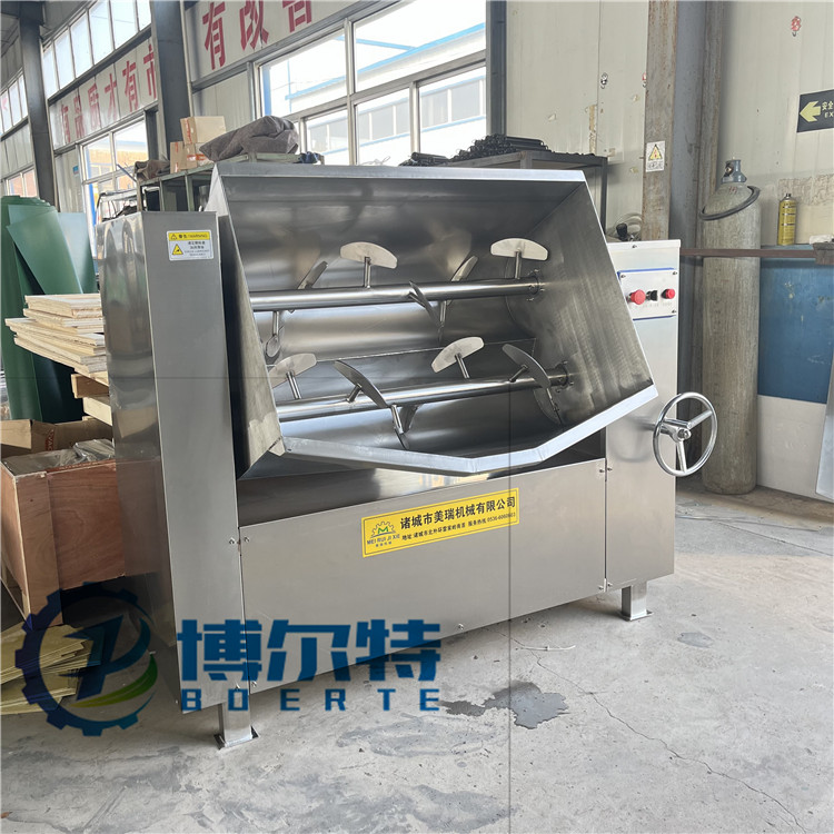 变频肉馅拌馅机 火腿肠拌馅机 小型真空拌馅机选用特别制作的扇型交叉式搅拌装置构造,斜板式浆叶,使原材料拌和跟匀称,两轴双电机设计,每根拌和轴斗能够独立操纵,正逆运行。一键式电动出料轻轻松松。可依据顾客原材料不一样选用可倾,螺旋式侧出料等方式,安全可靠 。容积从50型到750升不等,搅拌方式分为常规搅拌跟真空搅拌两种形式,客户可以根据物料不同进行灵活选择。