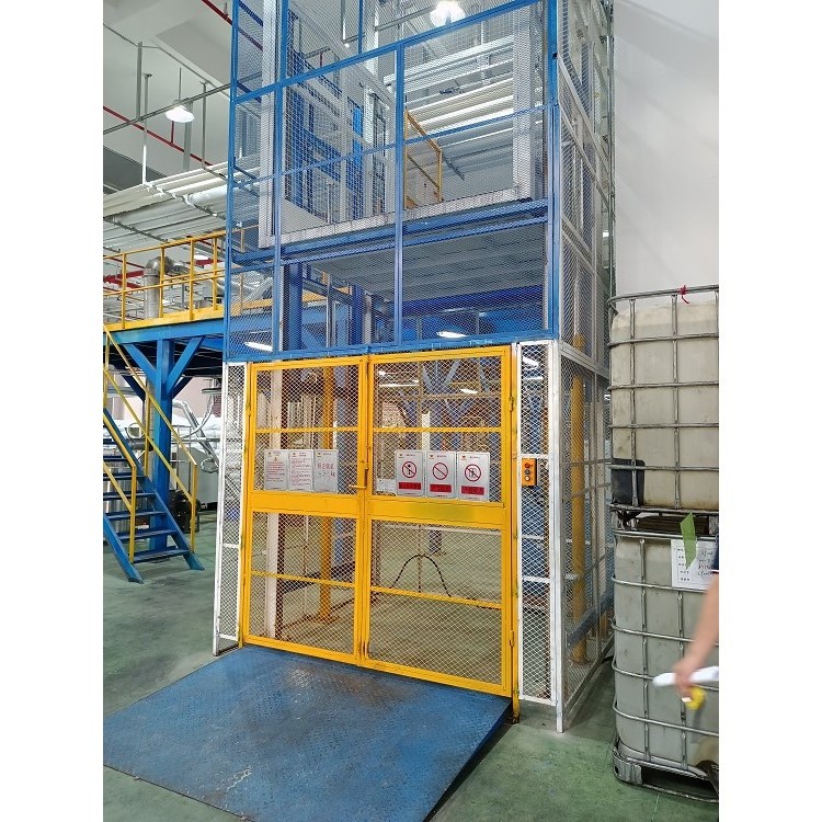 升降货梯升降机结构简约;架构稳固;可以不用基坑;也无需机房;可以在室内安装;也可以安装在室外;能耗小;造价低;操作简单;易于维护;运行平稳;寿命久长;主材料可以不锈钢;化工厂可选防爆类,台面可以做到很大,承载可以做到100t,门机实现双向互锁,门可以简约手动,也可以做成电动似传统电梯。选配任由客户依据自己实际情况选择匹配,支持定做,批量由已。