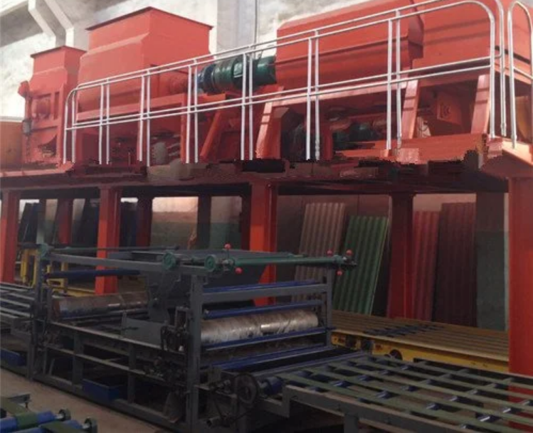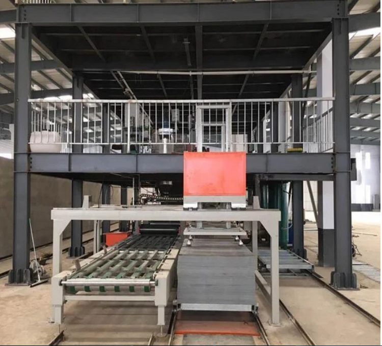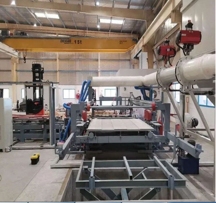 水泥纤维板生产线将工艺流程划分为储料系统、聚苯颗粒预发系统、自动上料系统、夹芯材料搅拌系统、成型板机、浇注系统、模具循环系统,产品一次浇注成型。可生产硅酸钙水泥纤维压力板夹芯复合板。