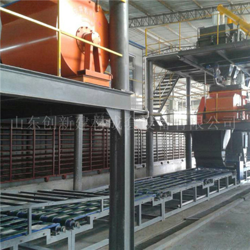 1、自动化程度高:整条生产线采用PLC电脑自动化控制,实现了自动上模板、自动涂脱模剂、自动配料、自动上浆、自动铺布、自动摊平、自动分切、自动复压、自动接板等自动化功能。