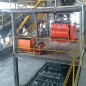 该机采用双驱动对辊挤压工艺,产品从上浆、主料、铺布、复合、复压一次性完成正版的生产过程,设备自动化程度高,运行平稳,规格任意调整。产品表面平整,光滑,密实度高,真正实现了新型建筑墙体板材的工业化流水线生产。大大降低了生产工人的劳动强度。改变了以往的立模,平模浇注成型的诸多弊端。