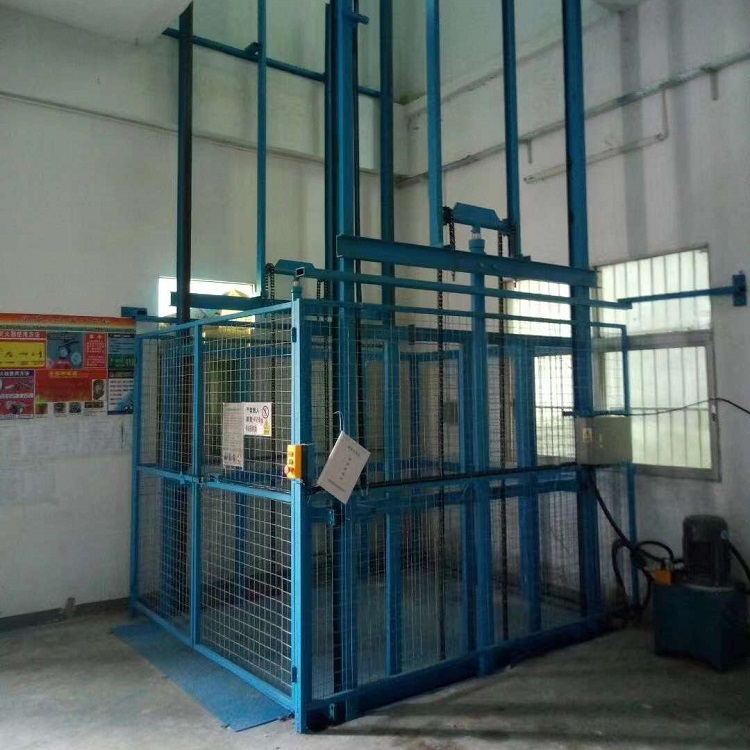 升降货梯一种非剪叉式液压升降货梯,是使用非常广泛的货物垂直运输设备。它通过电机驱动油泵,依靠油缸驱动重型链条带动液压升降货梯平升降,由于采用液压作为升降动力,具有载重量大,升降平稳等特点,广泛应用于建筑高层之间货物垂直运送。