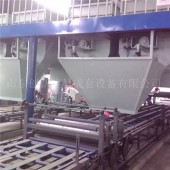 设备特点:1、自动化程度高:整条生产线采用PLC电脑自动化控制,实现了自动上模板、自动涂脱模剂、自动配料、自动上浆、自动铺布、自动摊平、自动分切、自动复压、自动接板等自动化功能。