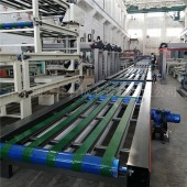 匀质板材自动生产流水线是由山东创新建材成套设备有限公司独立研制,拥有完全的自主知识产权,该生产线彻底改变了玻镁板生产用工多、工序繁琐、劳动效率低的综合状况,是玻镁板生产企业实现量产、提高企业生产效率及经济效益,实现规模化经营的有力工具。