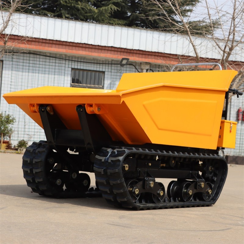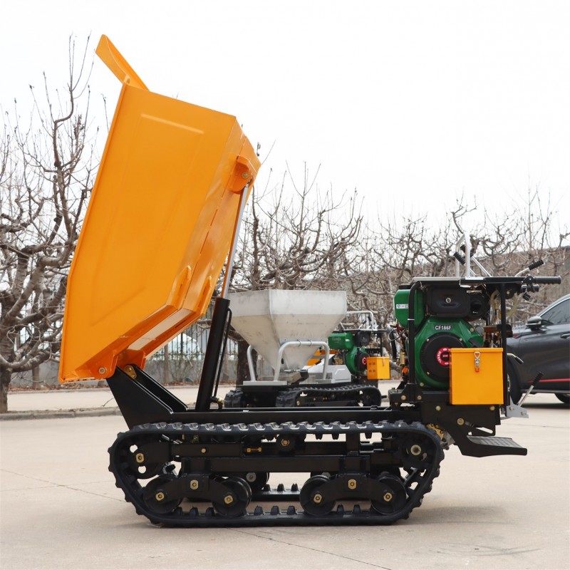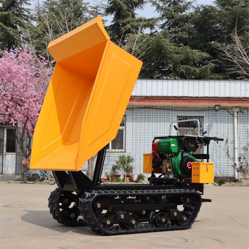 小型手推式橡胶链轨山地柴油自卸运输车 轻便型跟走式棕榈果林地液压翻斗转运车