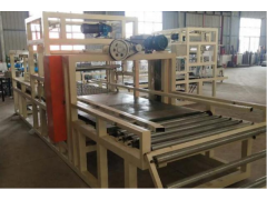该机采用双驱动对辊挤压工艺,产品从上浆、主料、铺布、复合、复压一次性完成正版的生产过程,设备自动化程度高,运行平稳,规格任意调整。产品表面平整,光滑,密实度高,真正实现了新型建筑墙体板材的工业化流水线生产。大大降低了生产工人的劳动强度。改变了以往的立模,平模浇注成型的诸多弊端。如:模具的使用量大,周转率低;需电加热或蒸汽加热;产品种类单一;隔声,保温效果不能满足市场要求等诸多缺陷。