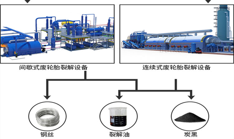 废旧轮胎热解是指在密闭的热解反应器中,适当加热下,轮胎中的橡胶主链裂解成单体、生物聚合物和片段,然后聚合成多种烯烃,从而脱除挥发性物质,得到废旧轮胎的过程。 固体碳。 主要最终产品是燃料油、不凝气体、炭黑和钢丝。 由于热解方法、温度等不同,每种产品的成分也不同。