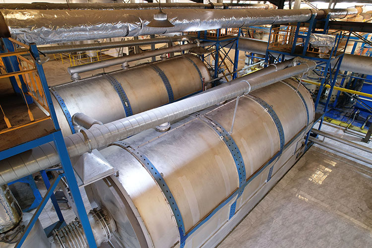 通过自动加料机将切碎的轮胎/整胎送入热解反应器,并用燃料/LPN/木材/煤/天然气加热反应器。 此步骤可实现自动上料,从而减少人工成本和投资。 并且轮胎热解过程中产生的合成气还可以用于加热热解反应器以节省成本。