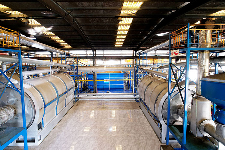 首先,用拉丝机取出轮胎钢丝,这一步是为撕碎轮胎做准备;其次,将没有硬钢丝的轮胎放入轮胎撕碎机中,得到小块轮胎,撕碎的轮胎容易热解;注:以上2步对于间歇式轮胎热解设备不需要,但对于半连续式和全连续式轮胎热解设备是必要的。