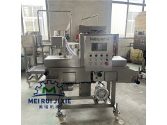 鸡排鸡柳在油炸之前必须要进行上浆上粉的,上浆裹粉设备是将产品鸡肉鸡排充分的额过上浆液然后再过上面包糠或者是其他的面粉等,网带式输送,剩下的面粉跟面包糠这些还可以再进行循环利用,使用率是非常高的。