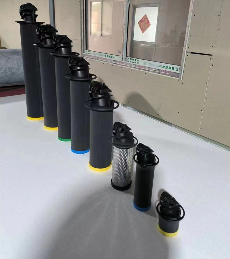 第二段可替换的玻璃纤维完全过滤3μ或更大的固态粒子及液体微粒,重力作用将水分带到过滤器底部并排出。