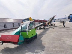 此大型出仓机由刮板扒粮机构、输送机构、升降机构、回转出料系统、除尘系统、电动行走装置和电控系统组成。适用于粮食仓储、加工企业,与输送机相配合可以进行散粮运输、堆囤、翻仓、倒仓、翻晒等作业。大型出仓机盛载料斗起到蓄料缓冲的作用,通过扒谷机,皮带输送机将散粮不间断地集中到盛载料斗中,从而使粮食装卸过程不间断。出料分流器是根据三通的原理制作而成,其进粮口与盛载料斗的出粮口想衔接。盛载料斗流出的粮食被分配分流到出料分流器的两个口,实现既可散装,散运又可定量包装。大型出仓机设有档位变速装置,电动行走。取粮采用双螺旋喂料,加大取粮面积,取粮快速,减少后续输送设备的移动次数。输送机与螺旋部位,可通过手动液压缸升降,根据现场需要,能在地上进行取粮,以便清出地上笼。这样的取粮方式,可减少粮食的破碎,作业后的地面基本无存粮,取粮输送机采用全封闭式,出粮时也基本上没有粉尘。繁重的出仓工作,在使用大型出仓机后变得简单了,既可驾驶操作又可遥控操作,把过去多人协作才能完成的出仓工作,简化到一个便可操作。轻松实现粮库出仓任务。大型出仓机有多个规格供选择,大家可根据自己的实际出仓量来挑选适合的出仓机设备。