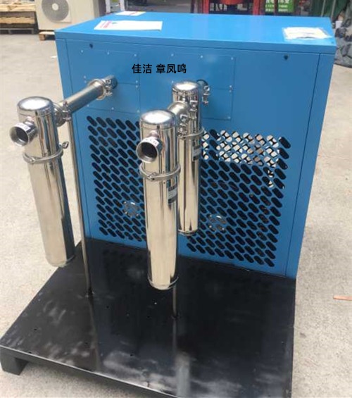 冷干机特点:1、制冷压缩机采用高温型全封闭制冷压缩机,运转稳定,噪声低,性能可靠,省电寿m长。 2、热交换器、冷凝器选用g效螺纹管,传热系数高,因而体积小,结构紧凑。筒体材料选用不锈钢或碳钢镀锌,可避免对夺压缩空气的二次污染。 3、制冷控制元件均采用制冷元件,性能优良,具有热力膨胀阀的节流降压功能,热气旁通阀的能量调节功能,油分离器的冷冻油的油分保护功能,冷媒高低压控制器的冷媒高低压保护等功能。 4、气液分离采用旋风分离与不锈钢丝网捕雾有机结合的气液分离器,具有气液分离效果彻底,避免水份的二次蒸发,冷干机的干燥效果的重要作用。它比旋风分离器分离效果好得多,同时又比过滤式气液分离器使用成b低,具有较市制性能价格比。 5、设备结构设计合理,便于维护保养,箱式外形,美观大方。 6、无基础安装。 7、实时显示运行参数。