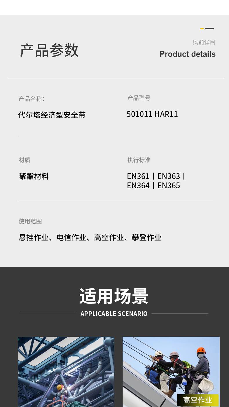 产品名称:代尔塔 501011 HAR11经济型单挂点全身式安全带