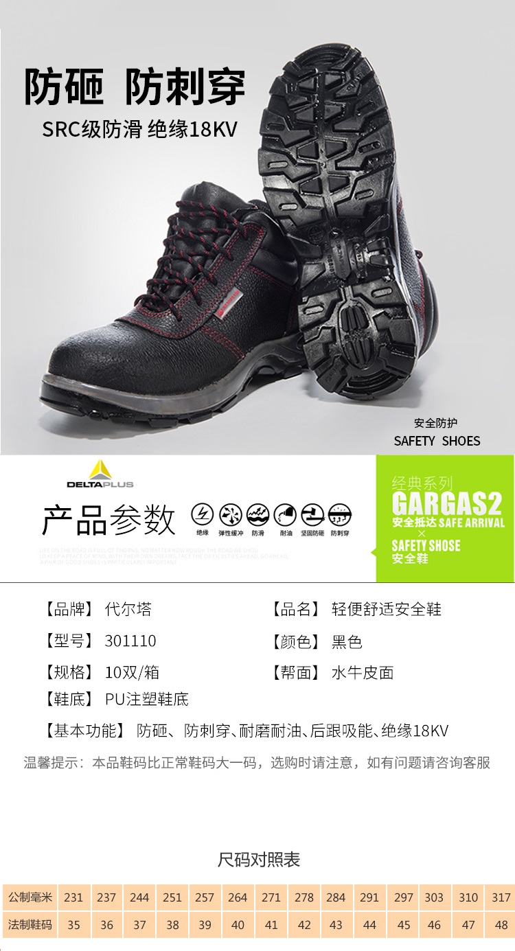 代尔塔 301110 GARGAS2经典系金属18KV绝缘安全鞋劳保鞋电工中筒