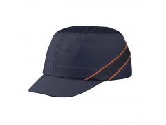 棒球帽形抗冲击安全帽,聚酰胺带聚氨酯涂层,内部减震帽壳为聚乙烯材料,并带有增加舒适感的氯丁橡胶泡沫材质;