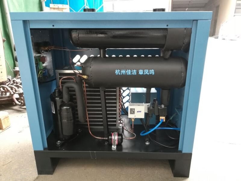 工作原理:压缩空气中水蒸气的量是由压缩空气的温度决定的:在保持压缩空气压力基本不变的情况下,降低压缩空气的温度可减少压缩空气中的水蒸气含量,而多余的水蒸气会凝结成液体。冷冻式干燥机就是根据水的饱和蒸汽压力和温度之间的对应关系,l用制冷装置使压缩空气冷却到一定的l点温度,析出所含的水份,通过汽水分离器与电动排水器将水排出,从而使压缩空气得到干燥。