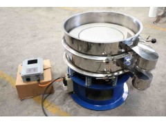 超声波振动筛是旋振筛的一种衍生产品,将超声波控制器与振动筛又机结合在一起,在多年的研究生产的旋振筛的基础上,在筛网上面叠加一个高频率低振幅的超声振动波,超微细粉体接受巨大的超声加速器,使筛面上的物料始终保持悬浮状态,从而抑制粘附、摩擦、平隆、嵌入等堵网因素,从而解决了强吸附性、易团聚、高静电,高密度、轻比重等筛分难题,使超微细粉筛分不再成为难事,特备适合高品质、精细粉体的用户使用。