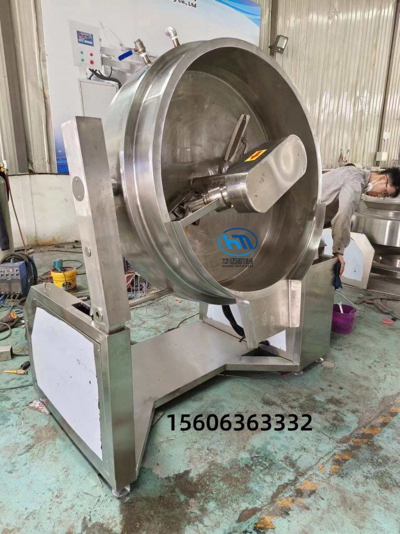 下搅拌炒锅避免传统上搅拌(搅拌桨在顶部)可能出现的“上层物料过干、下层过湿”问题。尤其适合高粘度馅料(如莲蓉、豆沙),防止结块或局部焦糊。(食品加工机械厂家Tel:156*0636-3332)