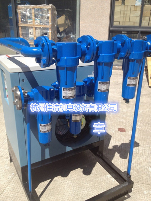 工作原理:压缩空气中水蒸气的量是由压缩空气的温度决定的:在保持压缩空气压力基本不变的情况下,降低压缩空气的温度可减少压缩空气中的水蒸气含量,而多余的水蒸气会凝结成液体。冷冻式干燥机就是根据水的饱和蒸汽压力和温度之间的对应关系,l用制冷装置使压缩空气冷却到一定的l点温度,析出所含的水份,通过汽水分离器与电动排水器将水排出,从而使压缩空气得到干燥。