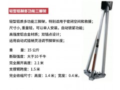霍尼韦尔新款51/7FT 救援三脚架套装,51/7FT替代1005041三脚架,尺寸小, 重量轻,可以单人安装,自动锁紧功能。高强度铝合金材质,运用自动式插销灵活调节脚架长度。双锚点设计。内置安装支架可匹配1005042绞盘,配有一个不锈钢单滑轮和一个安全钩;配有一个万向抓钩,承重负载136公斤;适用于多种场合,包括密闭空间进出,救援,定位和物品吊装。配有一个中央锚点和一个侧方锚点;