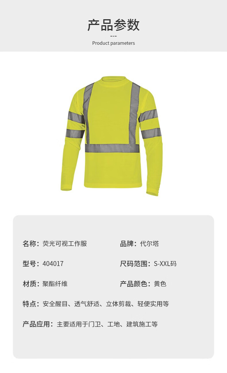 产品描述:代尔塔 404017 荧光可视工作服T恤款(长袖)