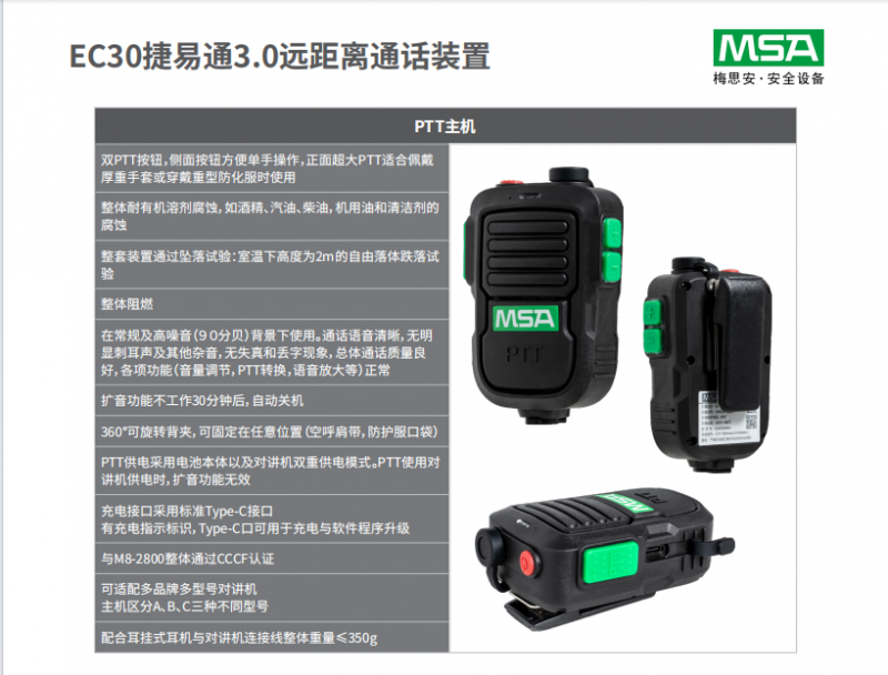 梅思安 10248791 远距离通话装置 捷易通3.0耳挂式 含摩托罗拉M1连接线
