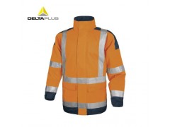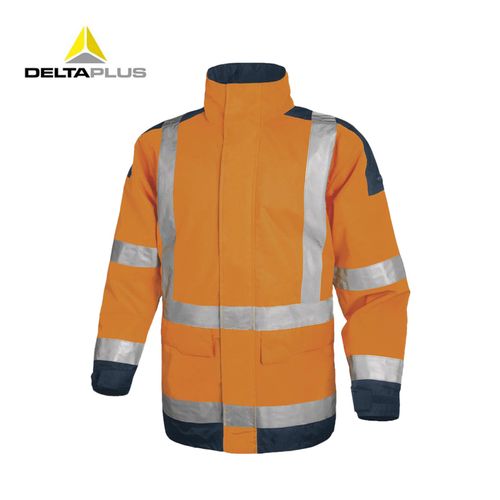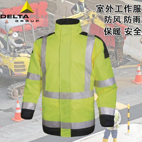PU涂层涤纶荧光防寒服,防水接缝,魔术贴防风前片门襟;