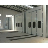整个喷漆房为拼装式结构,房体采用插式保温夹心彩钢板,密封、保温性能好,房体装有工作门,方便工作人员进出;铝合金包边大门,门装有观察窗,可观察房内动态,选用低噪音,高风量风机,确保喷漆效果的性,喷漆时外部空气经过粗效、中效过滤后由风机送到气压分流层,再经过顶部过滤净化后,进入喷房内。房内空气采用全降式,以0.2-0.3m/s的速度向下流动,使喷漆后的喷雾克粒不能在空气中停留,而直接通过底部出风口被排出房外,加上喷房内具有一定的空气压力,外部灰尘无法进入喷房内,这样不断地循环转换,且送入的空气具有一定的压力,可在工件四周形成一恒定的气流以去除过量的油漆,从而较大限度的保证喷漆的质量。