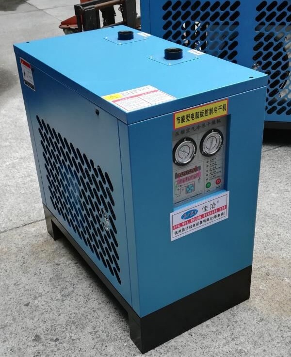 冷冻式干燥机是根据冷冻除湿原理,利y全f闭压缩式制冷系统,对经空压机排出的压缩气体冷却降温,使其中所含的大量饱和水蒸气、油雾凝结液滴,经过经气水分离后由自动排水器排出。较高温度的饱和压缩气体进入冷干机的预冷器,在预冷器中与来自蒸发器的干冷气体进行热交换,降低温度后进入制冷系统的蒸发器,与冷媒蒸汽进行d二次热交换,
