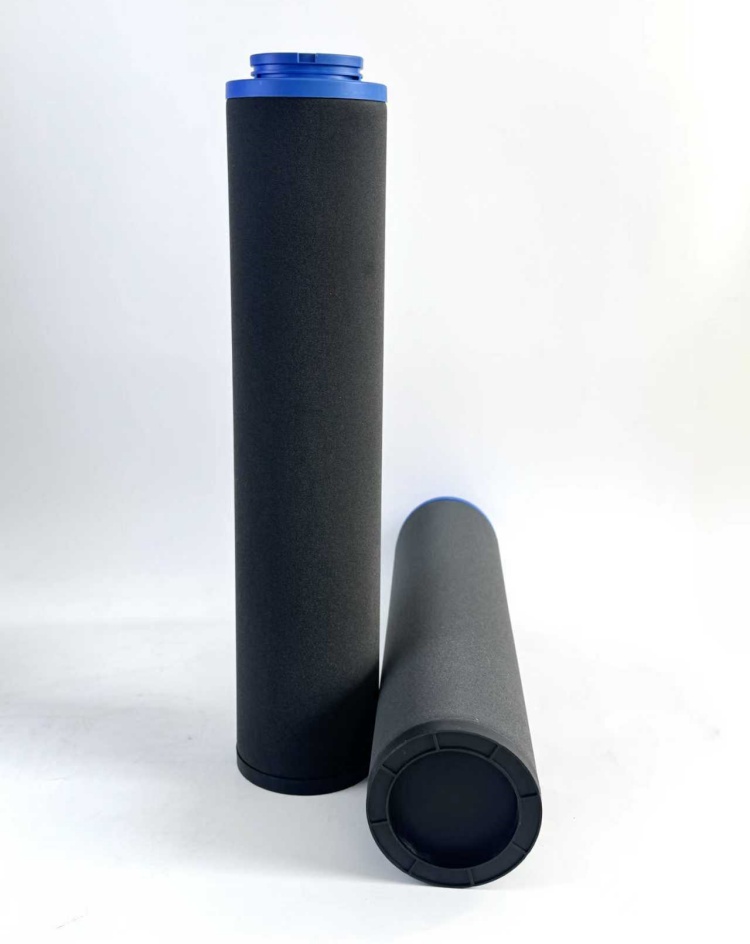 H c活性碳微油污过滤器滤芯能吸附碳氢化合物等气体异味以达到无味无臭之道g质量空气品z要求,如食品,药品,呼吸用空气等。切记y定要在上游加装A c高x除油过滤器以保护之。可滤除小至0.01微米之液态及固专体颗粒,达到低残留油份仅0.003ppm。