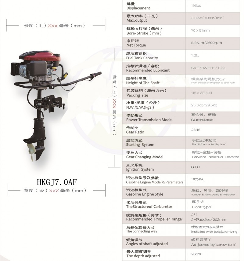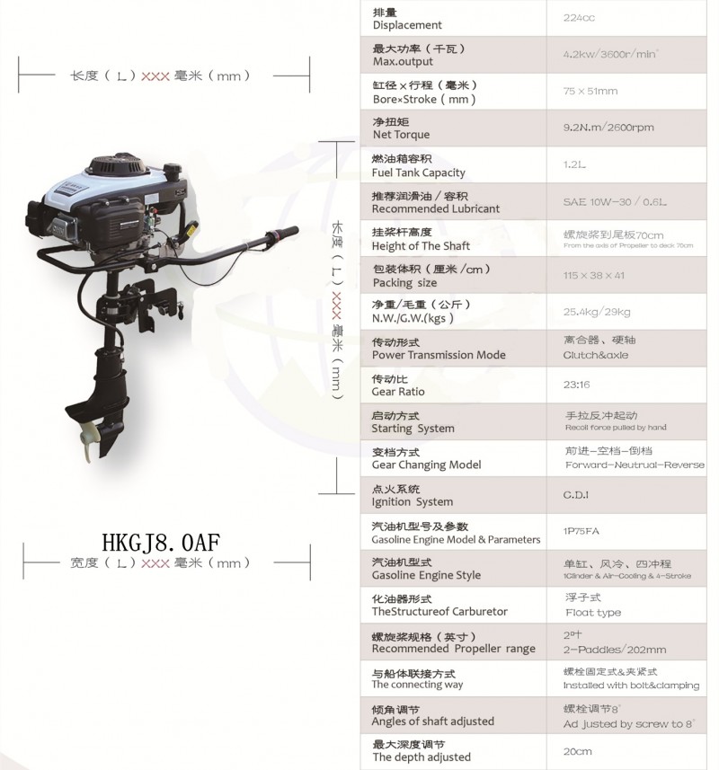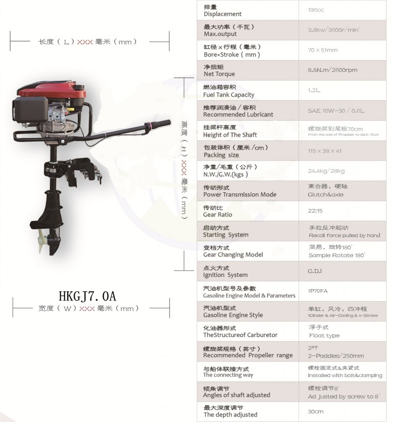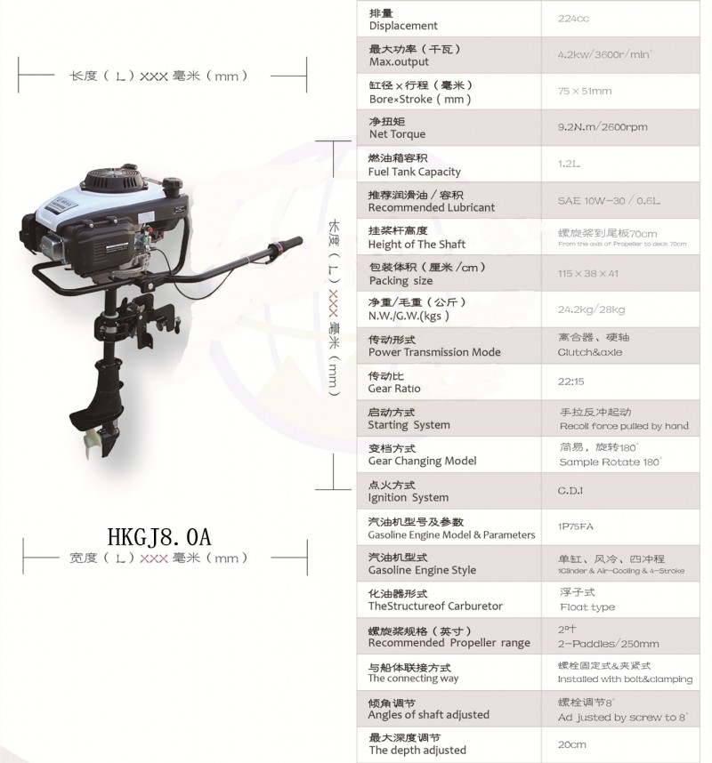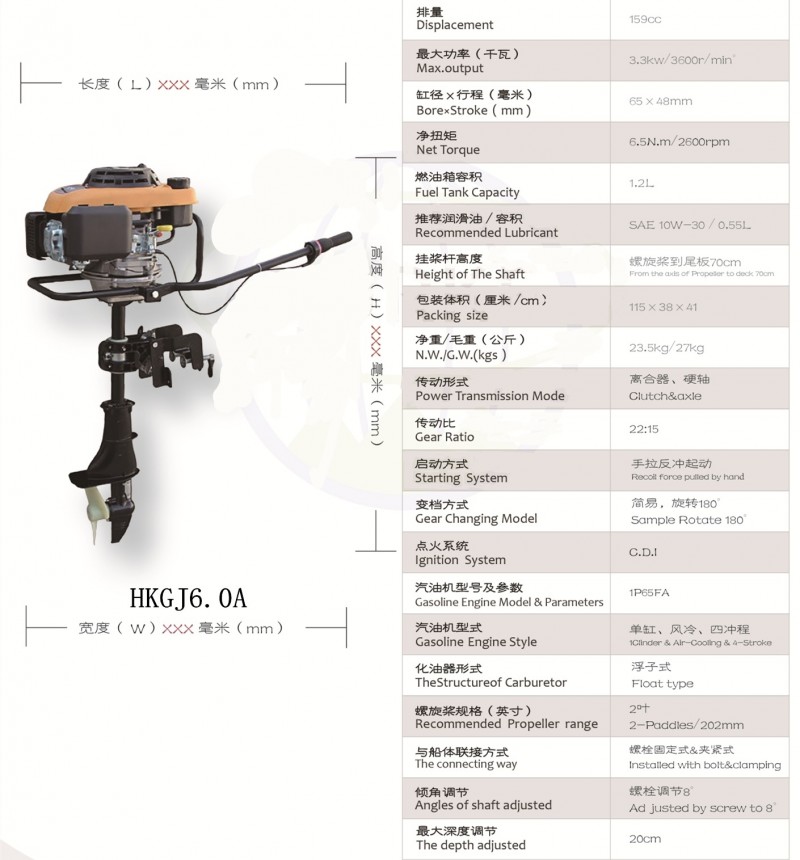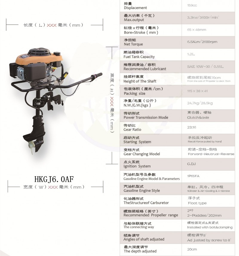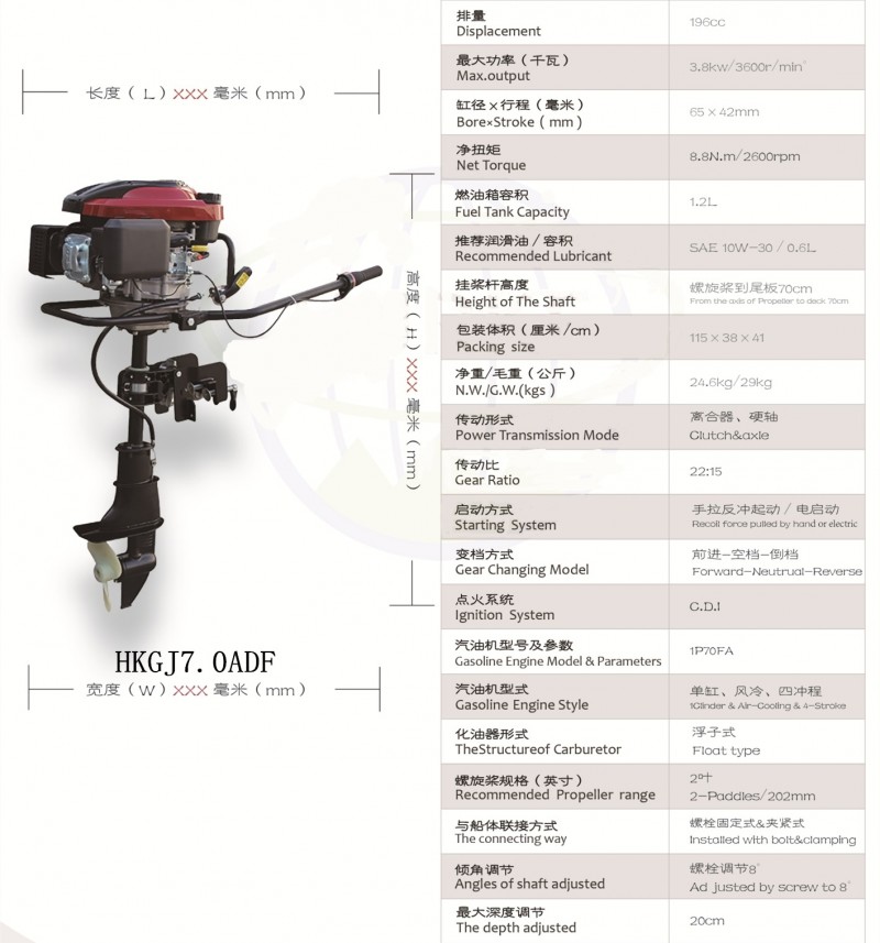 本款产品为汽油船外机,含多个型号,同个型号分A款(普通款)和F款(带档位),型号中带字母D代表可电启动,请注意区分。