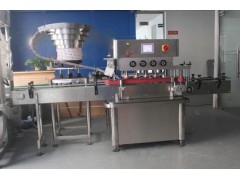 由人工将瓶盖倒入理盖机,该机可自动将瓶盖整理成统一样式输出至生产线经过的瓶子上,再经过后面的旋盖机自动将瓶盖旋紧。速度60-450个/分钟,无需人工操作,是节约劳动力、降低产品成本的理想选择。该机可实现缺盖报警和盖满自动停止理盖的功能。