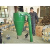 旋转气流沿器壁自圆筒体,呈螺旋状由上向下向圆锥体底部运动,形成下降的外旋含颗粒气流,在强烈旋转过程中所产生的离心力将密度远远大于气体的颗粒甩向器壁,颗粒一旦与器壁接触,便失去惯性力而靠入口速度的动量和自身的重力沿壁面下落进入收集袋。旋转下降的气流在到达圆锥体底部后.沿除尘器的轴心部位转而向上.形成上升的内旋气流,并由除尘器的排气管排出。
