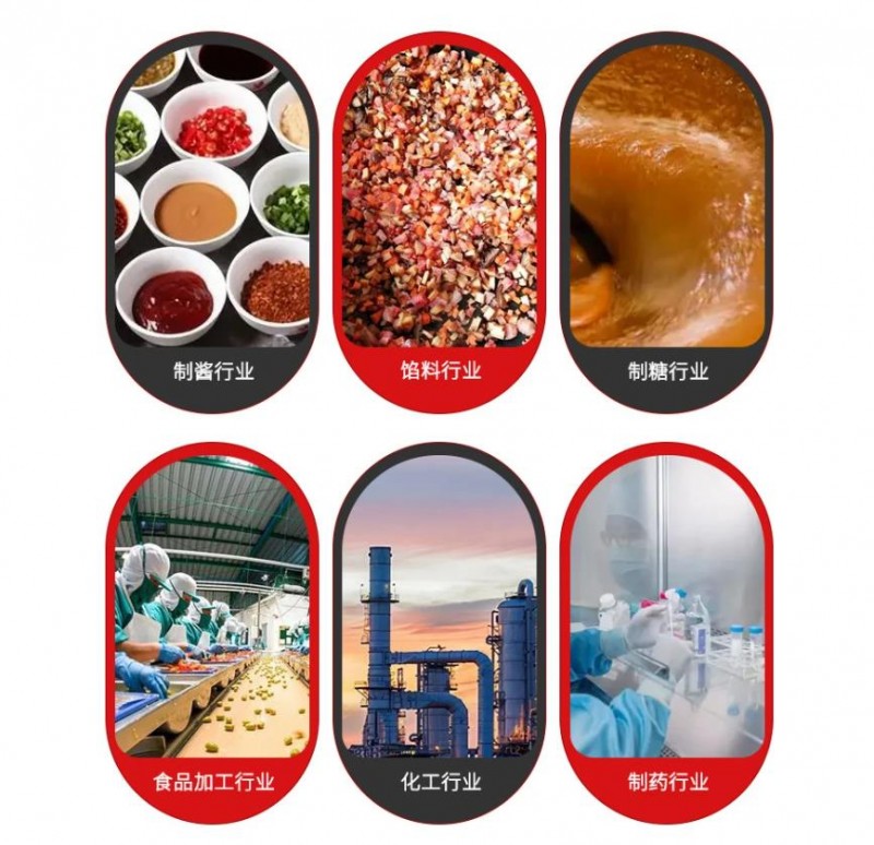 6.应用领域:广泛应用于凉粉、辣椒酱、火锅底料等高粘稠物料的加工,也适用于糖果、糕点、饮料、乳品等食品的熬制、蒸煮和浓缩。此外,还可用于餐厅、食堂的烹饪需求。