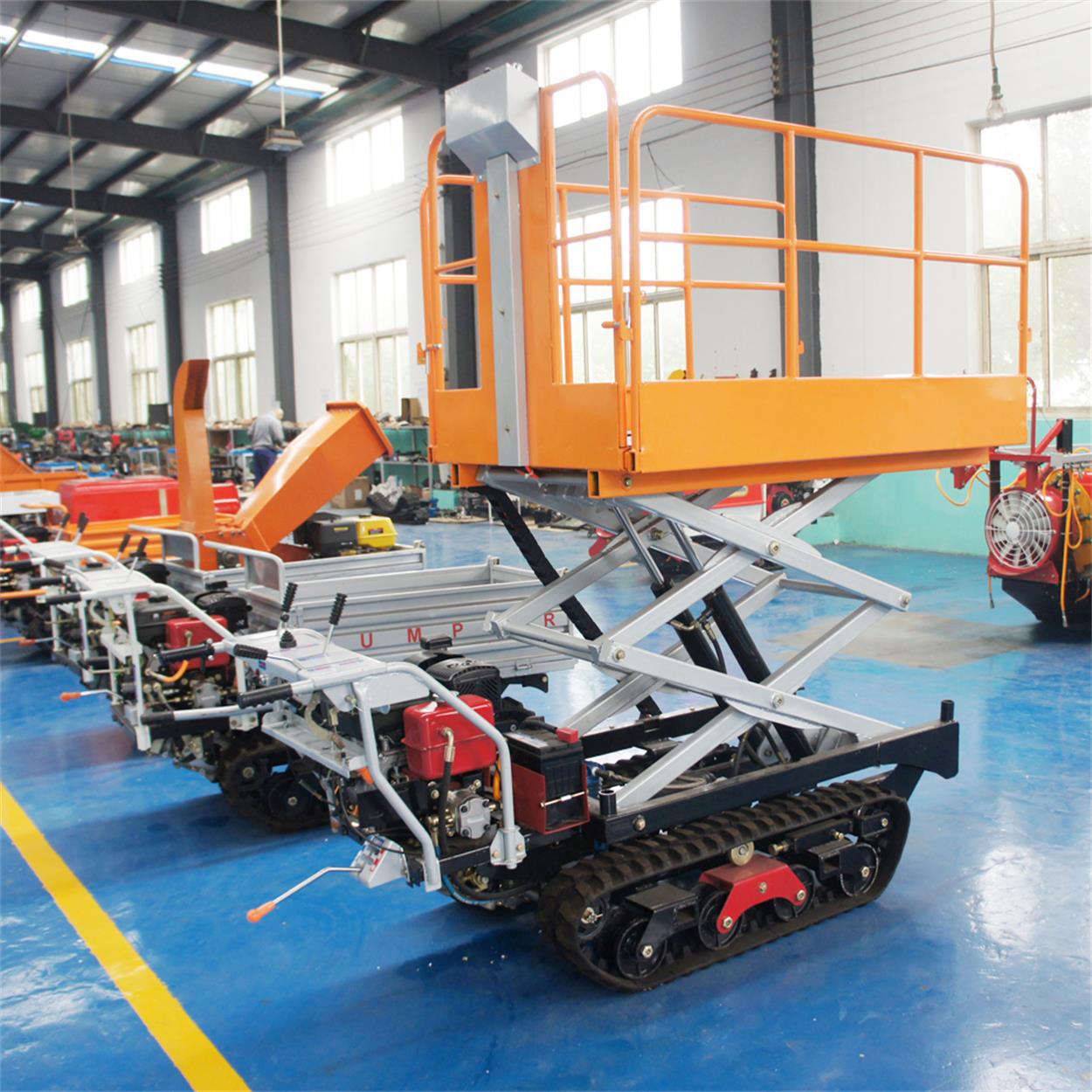 3.平台高度和宽度根据作业需要可调整。作业平台采用低地隙履带底盘有好的通过性,作业平稳,可以360度原地转向。