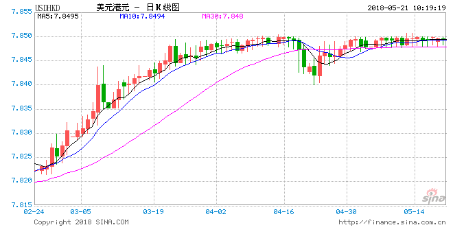 3月份以来,随着美国与香港利率的扩大,港元不断走软,目前距离香港金管局7.85的干预底线只剩下区区32个基点了。香港金管局总裁陈德霖预料,港元兑美元短期会触碰7.85关口。
