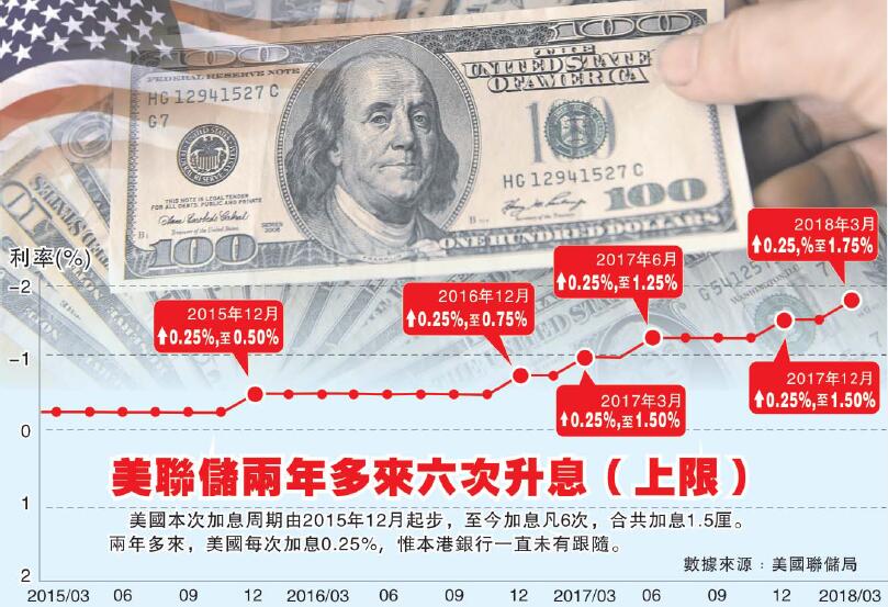 今明两年,美国将继续每年加息3次。加息提速,或加大港元市场利率波动空间,并引發楼市及股市等资产价格变动,美国加息溢出效应料进一步显现。