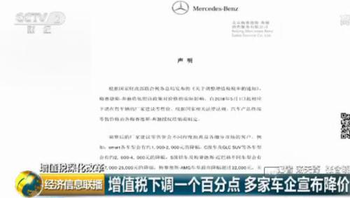 奔驰在昨天也发布了价格调整通知,单辆车的最高降幅超过3万2千元。捷豹路虎相关车型的最大降幅也达到2万元。业内人士告诉记者,车辆售价包括裸车价和增值税,在裸车价格不变的情况下,增值税调减,车辆售价也相应降低。其中,裸车价格越高,增值税调减的金额就越大。
