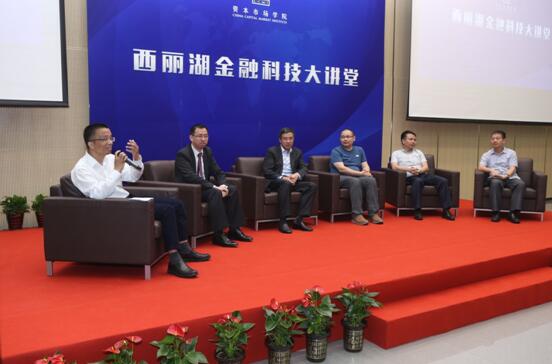 张韶辉(左一)主持“西丽湖金融科技大讲堂”问答环节
