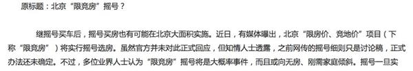而此次北京出台政策前,媒体也盛传,限房价项目将摇号: