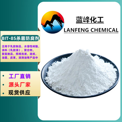 佛山市蓝峰助剂有限公司座落于经济高速发展的珠三角地区,其前身为佛山市南海区丹灶镇宏昌助剂厂成立于1999年,其间随着公司发展的需求现正式更名为佛山市蓝峰助剂有限公司,产品也在逐渐的改善中形成了集纳米抗菌产品研发、生产、销售于一体的高新技术企业。佛山市蓝峰助剂供应BIT-85防霉剂1,2-苯并异噻唑啉-3-酮BIT-85是主要的工业杀菌、防腐、防霉剂。具有突出的抑制霉菌(真菌、细菌),藻类等微生物在有机介质中的滋生作用,解决了微生物滋生引起的有机产品发霉、发酵、变质、破乳、发臭、等一系列问题