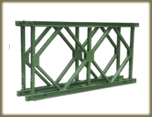 贝雷片通常由上、下弦杆、竖杆及斜杆经焊接构成,上下弦杆的顶端有阴阳接头,接头上一般配有杵架连接销孔。贝雷片的弦杆由两根10号槽钢背靠背组合而成,在下弦杆上,常焊有多个带圆孔的钢板,在上、下弦杆内配有螺栓孔,用以和加强弦杆及双层桁架连接之用,在上弦杆内部,有连接支撑架的四个螺栓孔,中间两个孔是用来供双排或多排桁架同节连接使用,两端的两孔是跨节间连接用的。多排贝雷片作梁或柱时,必须用支撑架对上下两节贝雷片接合部进行加固。