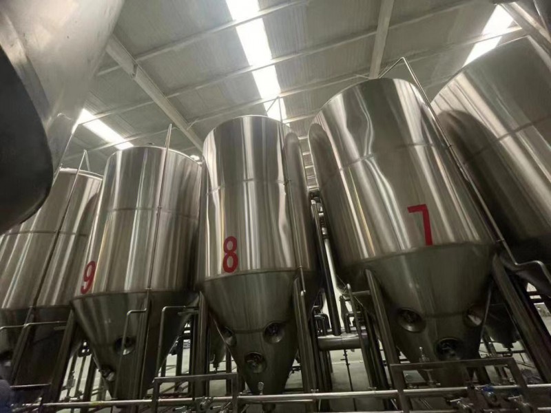 4、啤酒发酵设备:发酵池发酵罐、发酵温度控制设备、酵母培养扩培罐、洗涤杀菌设备、热水碱水备制设备等。