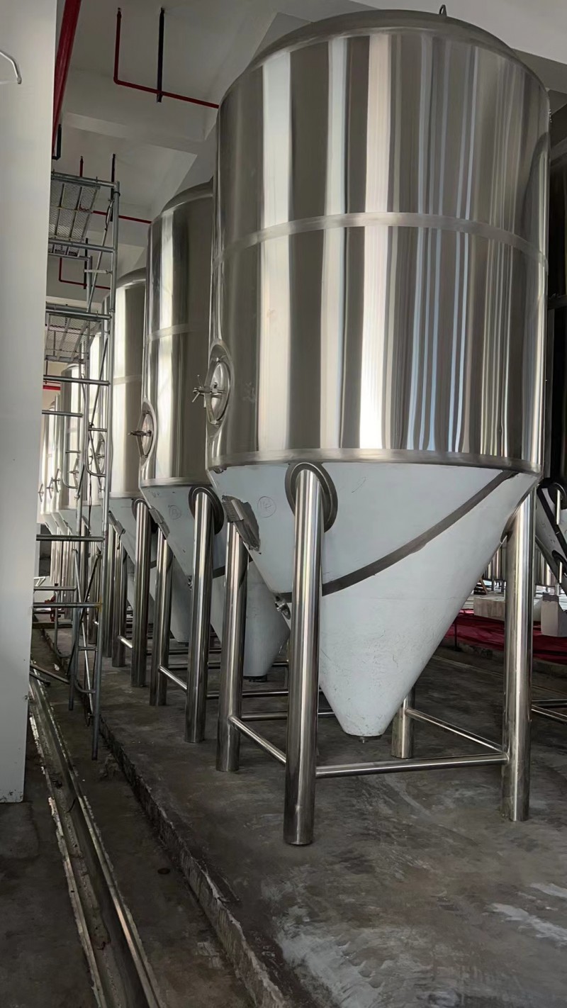 3.发酵系统一般由6—12只发酵罐组成,规格从100升—5000升均有,种类多样,更可根据您的需要量身定做,其设备内胆采用国际标准的不锈钢材料焊接而成,聚氨酯高压发泡保温锥底结构,外包根据顾客需求,可用不锈钢镜面、哑光、碳钢、喷涂等形式。