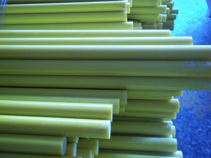 玻璃钢圆棒,其成型工艺是将浸渍过树脂胶液的连续增强材料等在牵引力的作用下,通过成型模具的挤压,并在模具中和加热系统中受热固化成型。